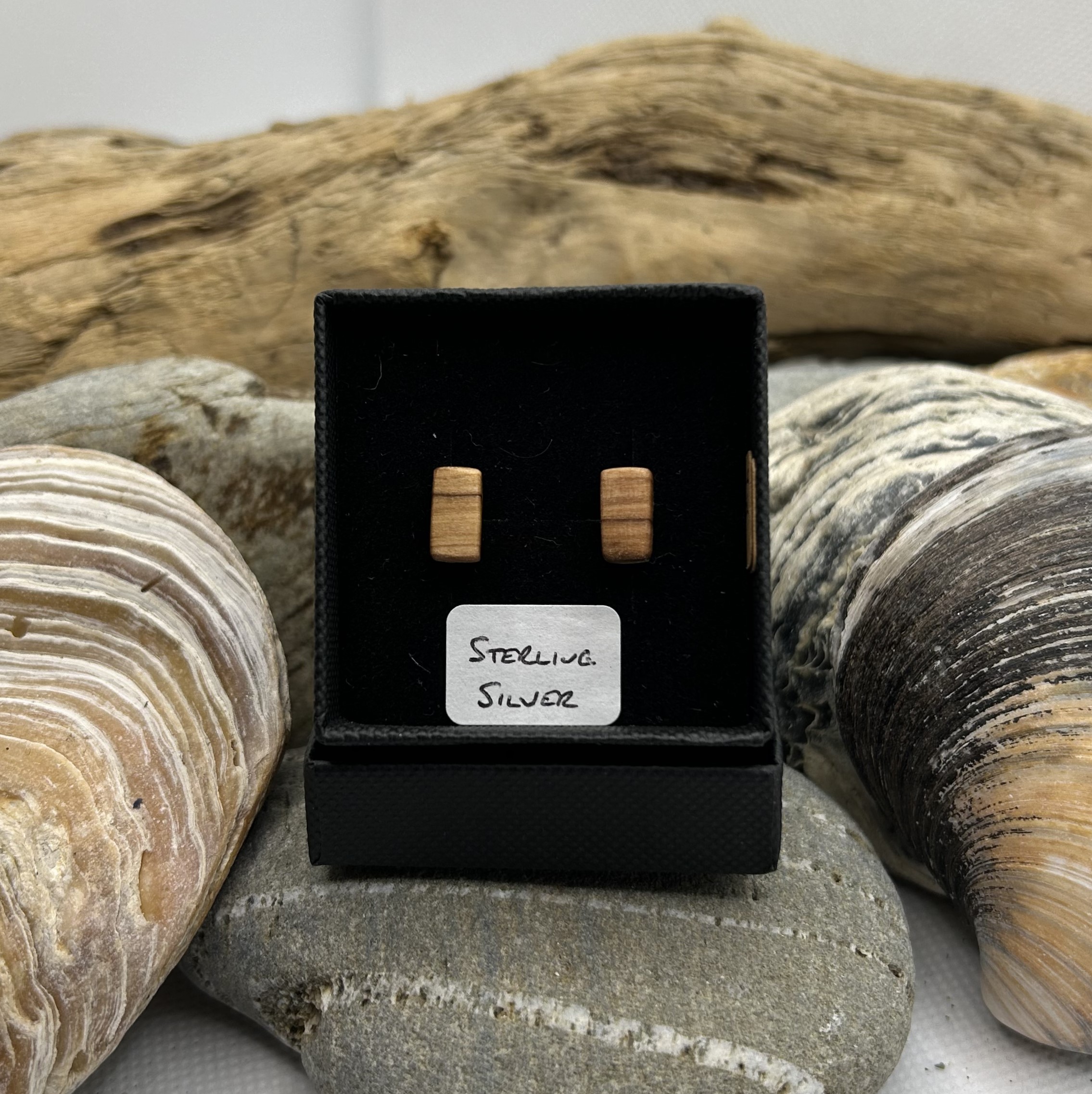 These Olive Wood Earrings measure approx 10mm x 5mm and are on sterling silver backs.